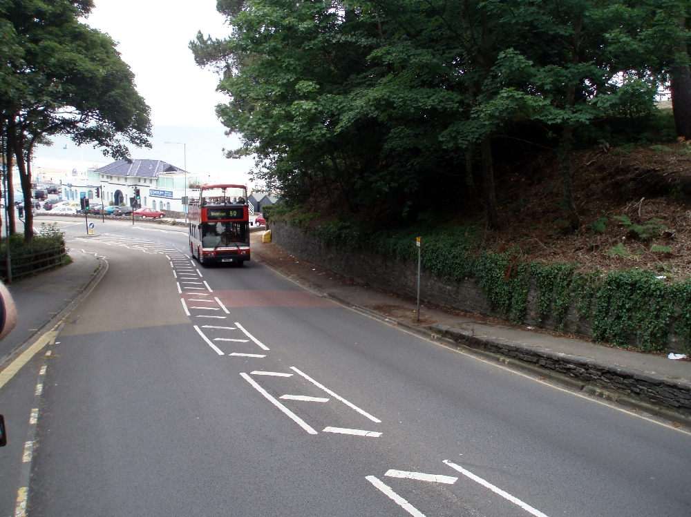 Nigel Peach writes "A candidate for Buses in the Landscape is this view of Wilts and Dorset's DAF DB250/Northern Counties Palatine 2 3149 M18 WAL, climbing up from Branscombe heading towards Swanage on the X50. The route from Bournemouth travels along the coast road via the Sandbanks Ferry."