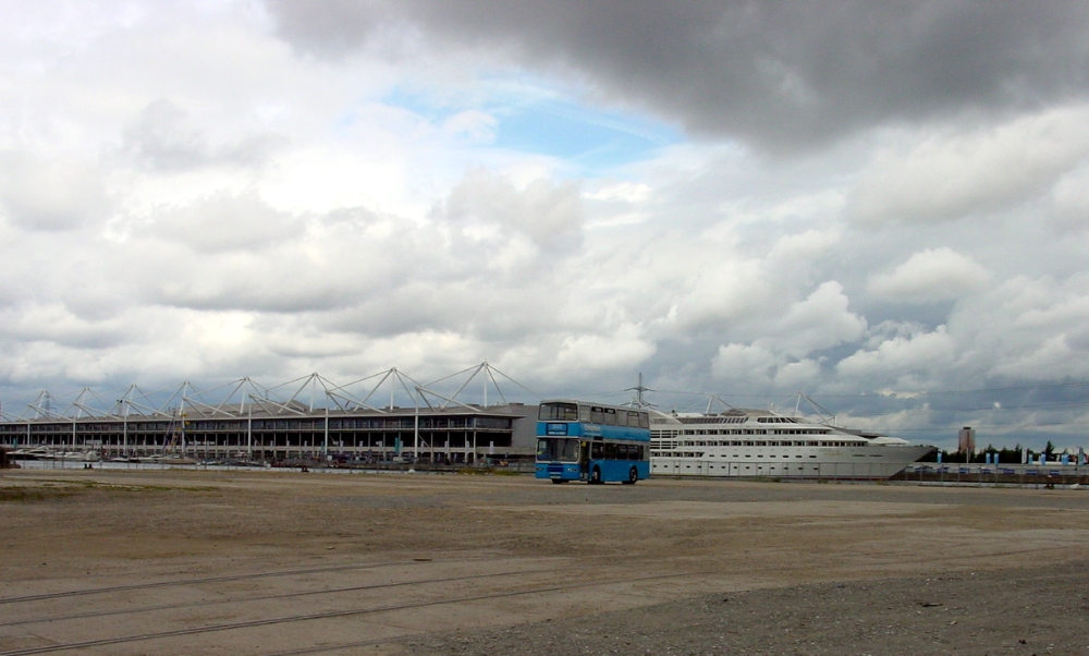 Bob Stanger writes " This picture was taken whilst on Park and Ride duties at Excel for the London Motor Show It is Volvo Olympian Ensign Bus 132, formerly Metroline AV 32. It was parked away from the pick up point for passengers whilst the driver took a break. By the time he returned the crowds had shifted to a different part of the car park to get the bus to the show."