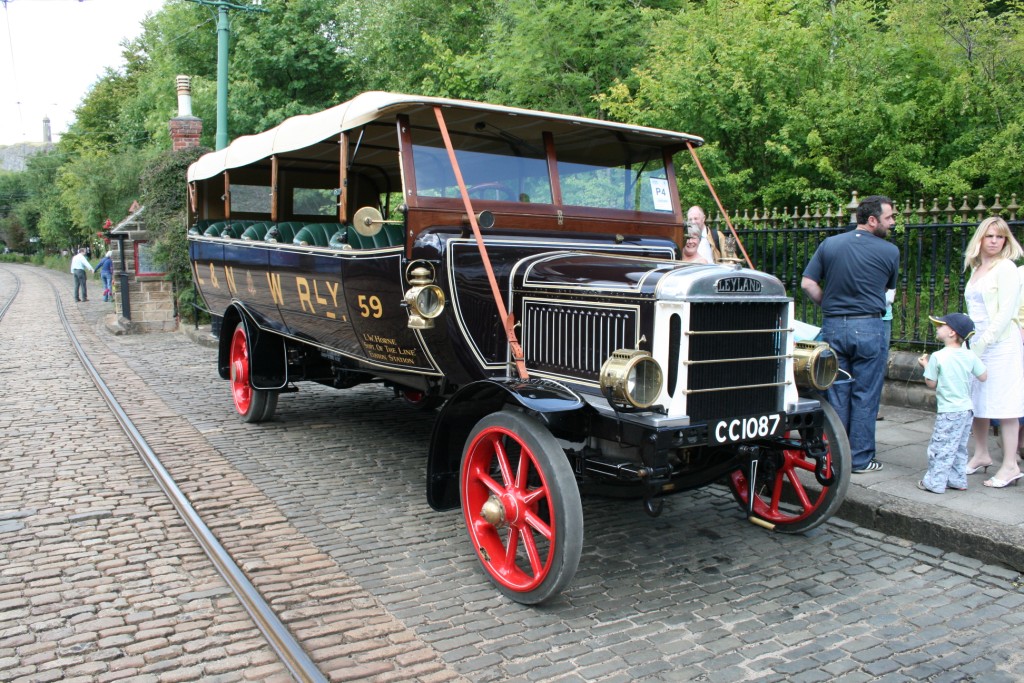 Now 100 years old, in 2008, this is the oldest surviving British-built motorbus! It originally operated for The London Central Motor Omnibus Co, being fitted with a second hand body ex- Thomas Tilling, the body having originally been fitted to a Milnes-Daimler which had been converted into a mail van. It is the only remaining “First Generation” bus in this Country and is the oldest restored Leyland (other than the lawn-mower). Found in a totally derelict state it was restored to its original condition by Mike Sutcliffe, and his small team of helpers, over a period of four years and was completed in 1996 since when it has won many prizes. The bus is kept in tip-top working condition and is a pleasure to drive, except in bad weather! Mike’s whole collection of eight elderly Leyland buses are here today, having all been brought to Crich by low-loader especially to celebrate this event of Ten Years of The Leyland Society!
