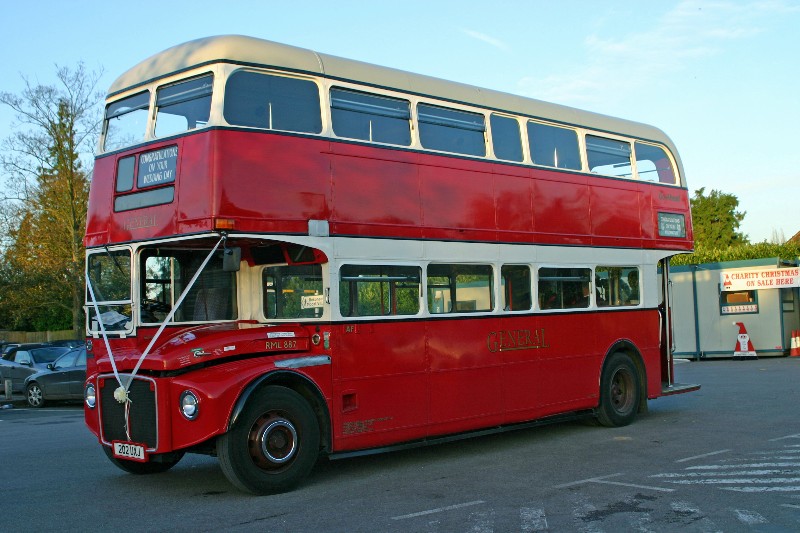 Colin Cooke writes "Seen in Beaconsfield Waitrose Car Park Saturday afternoon was this immaculate RML887 about to transfer a wedding party to a restaurant in Amersham, before returning to its base at Putney...."
