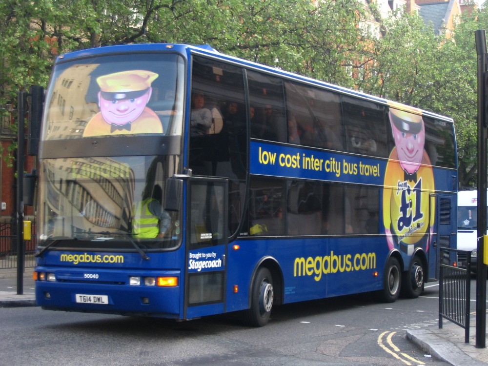 this coach is set to become 50001 and is seen on a Megabus working in London.