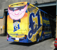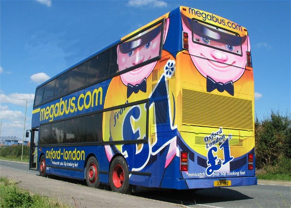 Trevor Wilson wrote to say "I saw Megabus 136004 (or should that be 13604) 331HWD Alexander bodied tri-axle Olympian near Baker St at 08:10 on Thursday 14th August. The bus was empty, with driver and parked at a bus stop in the bus lane in Gloucester Place between Marylebone Road and Dorset Square. Presumably the bus had travelled in along the Marylebone Road and turned left prior to Baker St underground station (Gloucester Place being the northbound A41, Baker St being the southbound A41) and dropped off all passengers at the first bus stop 20 yards along.