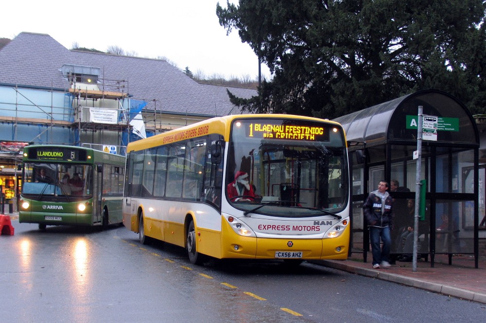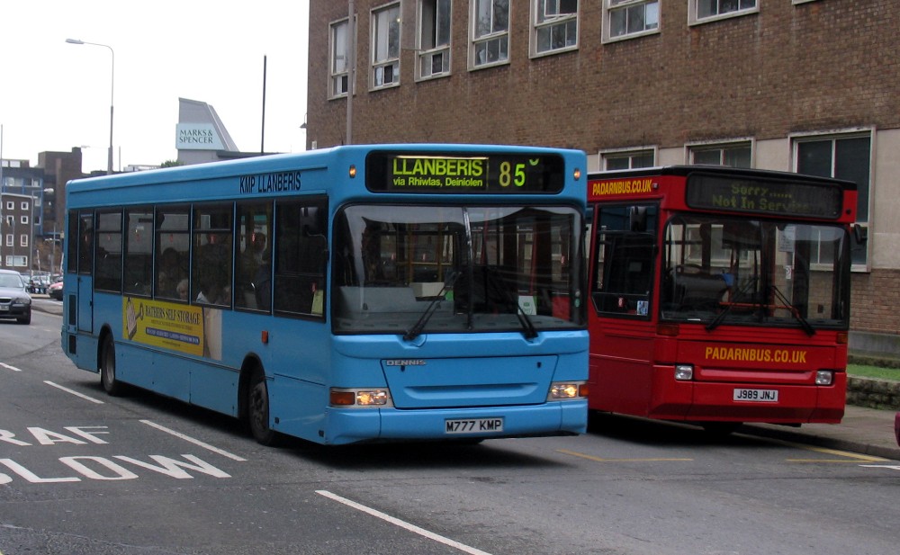 Now following many years of double deck operation local services are in the hands of Dennis Darts from Arriva and a variety of buses from KMP Llanberis who run a coast service in competition with Arriva.
