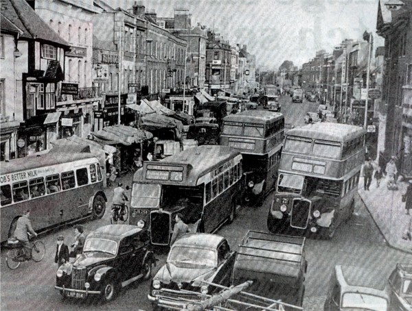 Nigel Peach writes "Some of your readers might be interested to know that in this week's Bucks Free Press (April 9th) on Page 8 there is an old photo of High Wycombe High Street in which at least 6 buses are visible on a busy market day. The three buses in the foreground are all identifiable: Bristol LWL6Bs 616 and 618 GJB256/8 and KSW6B 695 HMO841. Each of these buses were based in Wycombe for many years - perhaps all their working lives. I could be a real anorak and bore you with a bit more about each bus, as they were around when I was a child bus spotter and had a far better memory than I do now! There is also a K6B in the picture but the registration number is obscured. The photo was probably taken in the late 50s - it was before white fleet numbers appeared on the front of the buses and when D/Ds still had an upper cream relief band below the upper deck windows".
