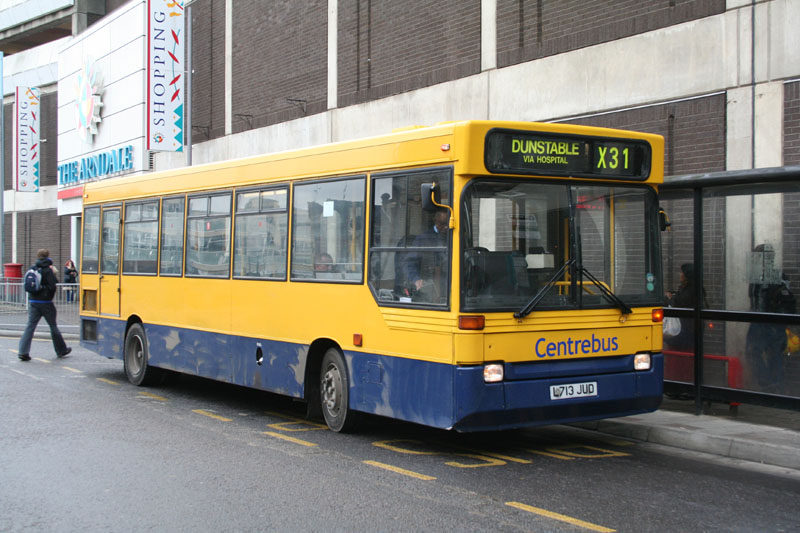 Mike Penn writes "As far as Luton happenings are concerned Lutonian have acquired two more vehicles from MK Metro. M70 TGM is a Plaxton bodied Mercedes 709D new to Tellings Golden Miller and L713 JUD is a Plaxton bodied Dennis Dart new to Thames Transit. This rejoins L710/2 JUD in Luton, the former with Lutonian and the latter with LQT. Both new arrivals retain MK Metro livery with Centrebus vinyls added. I am attaching a photo of L713 JUD."