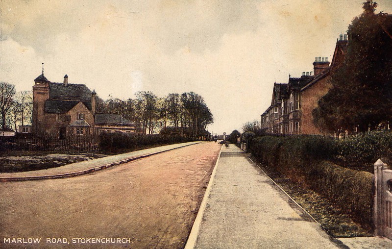 Ed Maun writes "I thought you may be interested in the attached photograph of Marlow Road, Stokenchurch. I come across it recently going through papers; it had been retrieved from the family home in Stokenchurch at the time the house was cleared for sale. It is actually a post card which was sent to Mum and Dad by Diana Bartlett who one time lived at Little Studridge Farm and owned the milk round that Dad did part time. It is photographed from the junction with Wycombe Road. I think it could date from the 1930s. The scene was little changed in the 1950s although there were more houses further down on the right hand side by then (including the family home). The building on the left is the school and school house which was known as the board school. Its equivalent today would be a middle school. I went there for 4 years, leaving in 1948 to go to Wycombe RGS at the top of Amersham Hill. One thing that fascinates me about this photo is its sharpness and detail. There is a group of ladies on the left hand pavement – are they waiting for a bus – the stop was somewhere about there at one time. There is also a cyclist pedalling towards the camera. Note also the back of the road sign which would have displayed “slow – major road ahead”. There appears to be a car in the distance, and is that a dog on the left hand pavement?"
