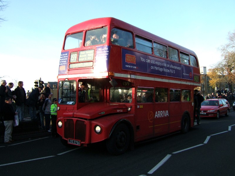 However, not that anyone official will ever admit it, RM2217 was NOT the last Routemaster in service on the 159. In a repeat of what happened on the last tram night, a different bus was running so late that it ended service after 2217. Appropriately this was RM54, the oldest body still in regular service and the only plain window left (in both cases excluding the 'showbus' RM6). You have a photo of this on your site heading past Brixton Garage to Streatham Station, where it arrived about a minute and a half after 2217 had set down at Brixton Garage. Why it was running 70 minutes late is something only the crew would be able to tell !!