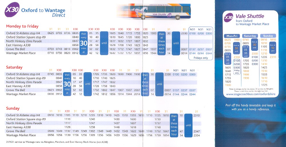 Revised timetable and route. Withdrawn from Milton Heights and Sutton Courtenay in the peak hours and withdrawn from south Abingdon in the off-peak. Peak journeys withdrawn on Saturdays.