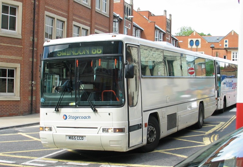 3033 writes "Just a quick observation on the 16.15 Swindon - Oxford last evening, Friday 17th was Stagecoach Volvo/Plaxton coach 52265 (M165CCD). Vehicle had correct electronic route number and destination, but was in overall white livery with just a Stagecoach transfer and fleet number on the front."