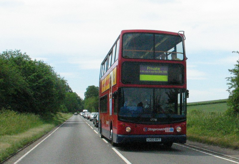 The Megabus was being worked by a Trident in London red and 17781 is seen