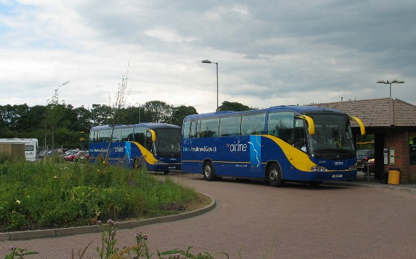 Here Scania Irizar coaches 61 and 60 pause on their journeys from and to