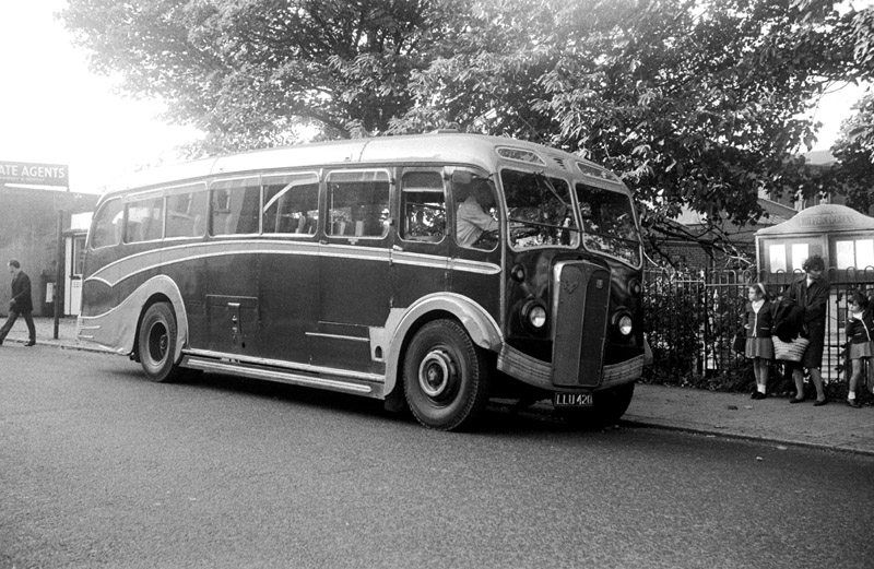 Third is LLU420, an AEC Regal III with a full-fronted Gurney Nutting body photographed in Reading on October 9th 1965.