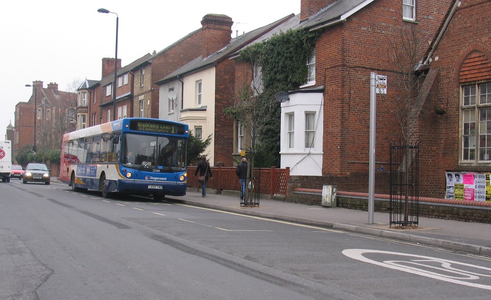Another interesting stop is the resited eastbound stop in Cowley Road. This stop, at James Street, has been resited and now offers a true front loading layout. However whilst there is new stop pole complete with an OBC flag, there is still a flag in the middle of the stop resulting in buses not using the stop fully. The picture below shows this practice.