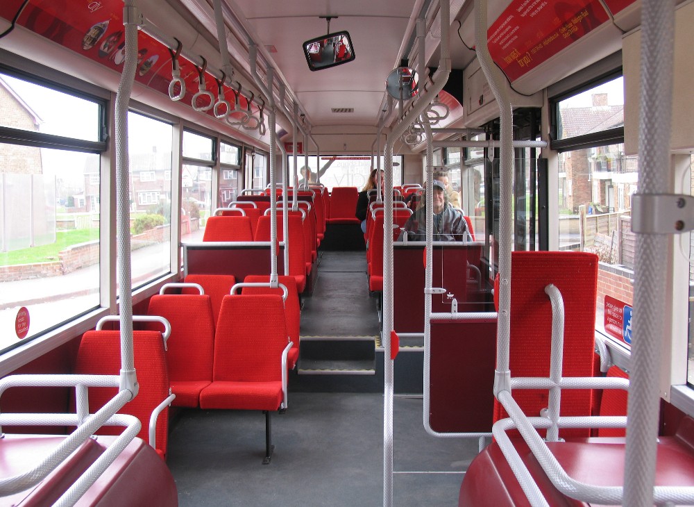 the inside including new seat coverings, recoloured poles and red bell pushes.