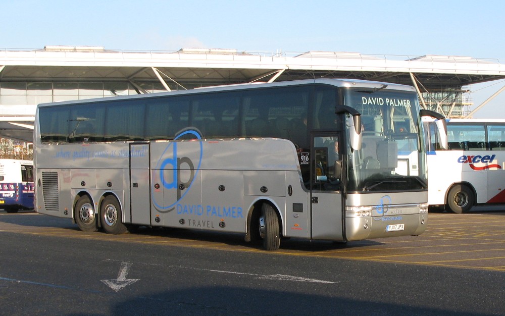 An unusual coach seen at Stansted was this Van Hool T916 Astron. One does not