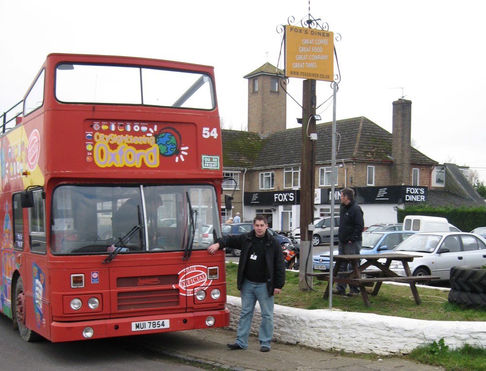 As I have left the council, I took a party of my colleagues from the public transport teams to Fox's diner for a leaving breakfast. Rather than taking the X39, I borrowed and drove city Sightseeing Oxford Olympian 54 on a special hire and took everybody on the bus there and back - the cafe owners are used to a car park full of hungry bikers, but were a little surprised when the CSS Olympian arrived with a party of 15 hungry people on board