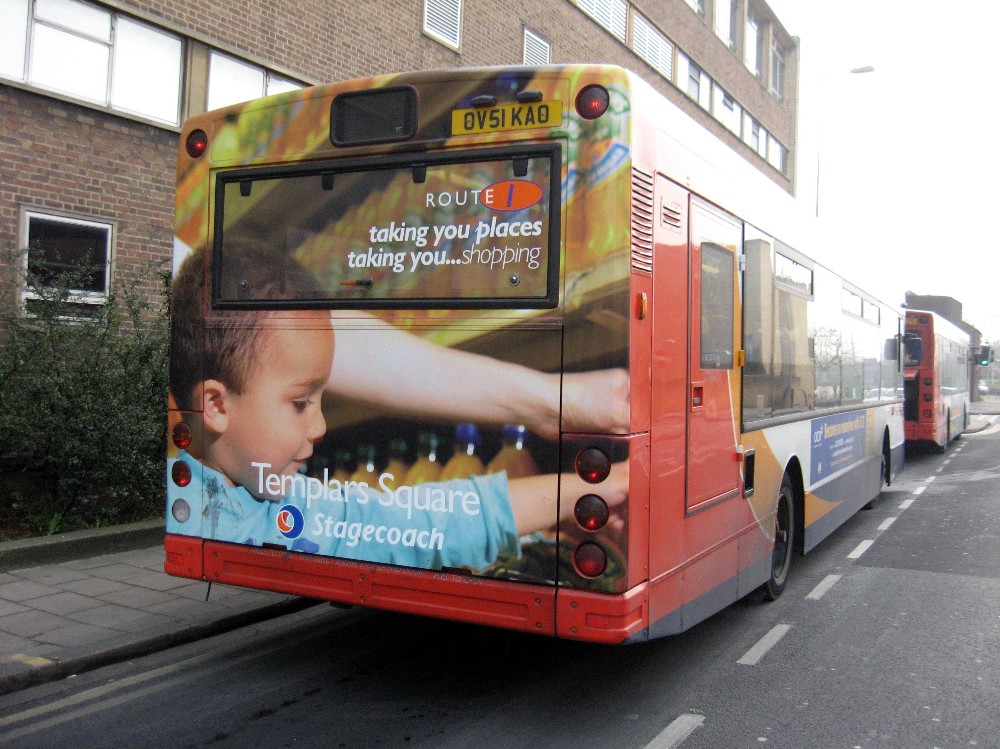 18394 is one of three vehicles which carry supplementary branding for the Bicester Duo ticket which was introduced during 2007. The ticket allows two people to travel from Bicester to Oxford for the price of one.