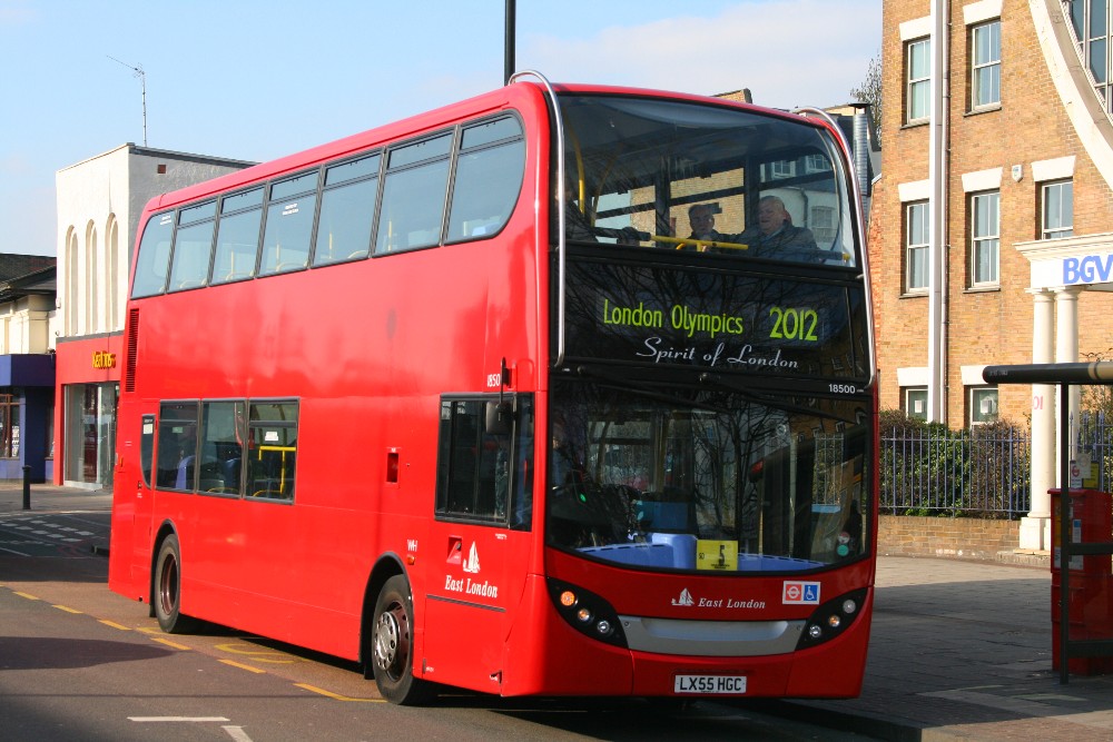 A significant bus in the East London fleet, 18500, the Dennis-Enviro 400,