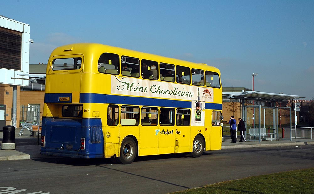 Thus, Saturday 23rd February 2008 will be the last day that people will be able to ride on the 21-year-old double-deck Metrobuses. It will also be the last chance to ride on the high-floor Optare Spectras, which also leave the network on the day. The first was the prototype and was exhibited at the Bus & Coach Show in Autumn 1991. These Spectras were a real revolution in design when first introduced in 1992 (though they are rather tired now, after a hard life!).