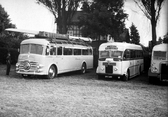 David Simpson writes "An exchange of messages last year on the Ceased_Bus_Operators group concerned this vehicle. I have only just "caught up" with this subject by coming across the attached picture, taken at Henley-on-Thames 6 July 1951. The main subject was the visiting Fiat from Italy* but OFC489 was sitting beside her. I noted at the time that the owner was L. Howes, Oxford. Chassis Commer Avenger 23A0126 (I probably got that from the tax disc, so -- E&OE!). Body apparently Harrington FC32F.