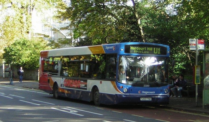 Martyn Banham writes "More unusual findings - I imagine this has already been reported however. In a brief moment of sunshine on Thursday 21st 22203 (T203TND) MAN18.220/Alexander ALX300) was spotted at Pullens Lane on the U1, presumably covering for 22054 whilst is has its livery removed. It is difficult to see the full-load of passengers, with the U1 regularly greeting 70 people at this stop.