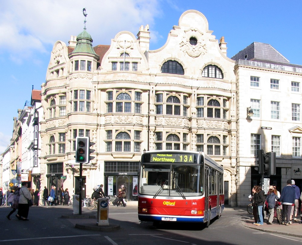 Dart 402 stands out against a backdrop of Oxford City centre building by Carfax