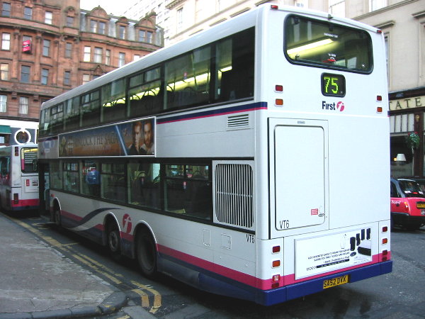 First VT6 at its daytime terminus of route 75 in the centre of Glasgow