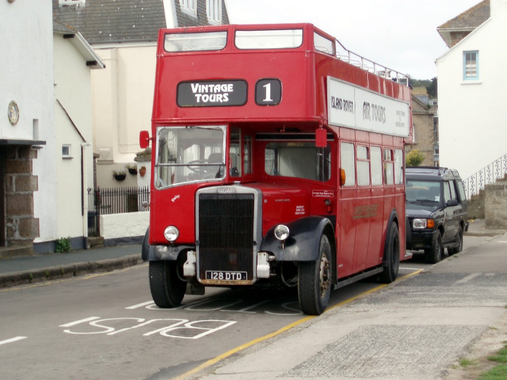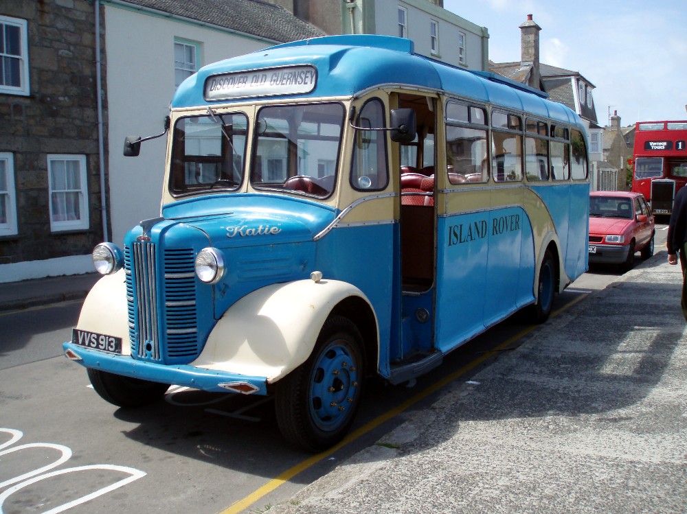 Island Rover operate this 1948 Austin K2 (therefore named Katie) VVS913 with Barnard bodywork. I understand this saw service in Guernsey (hence the destination blind) before moving to the Isles of Scilly. It does a guided tour of the island with a very amusing commentary from the driver called Fred.
