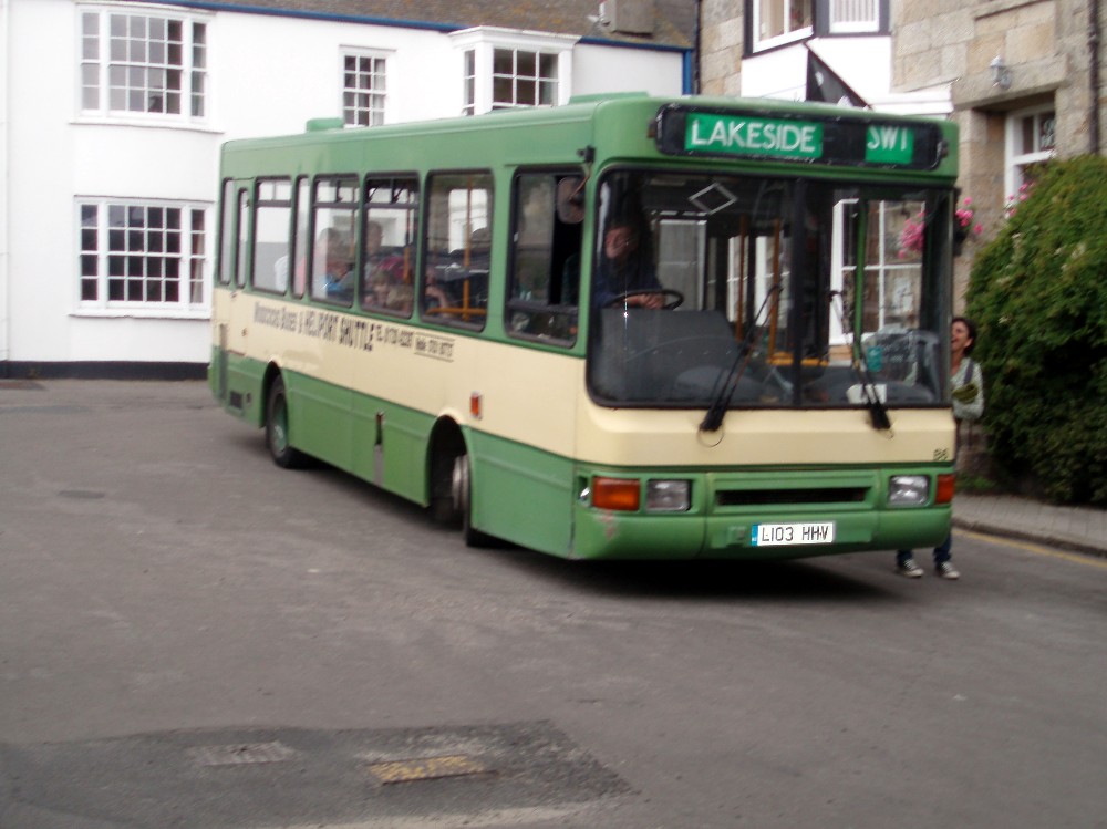A rather poor picture (apologies!) of NCME bodied Dennis Dart L103HHV which runs the airport shuttle. The destination of Lakeside SW1 seems a bit bizarre, but this bus was originally London Northern DNL103 and later with Kings Ferry of Gillingham where it was fleet number B6. (This fleet number is still shown which almost made me wonder if in fact it was a Volvo B6!). Sister L109HHV was recently withdrawn by Carousel.