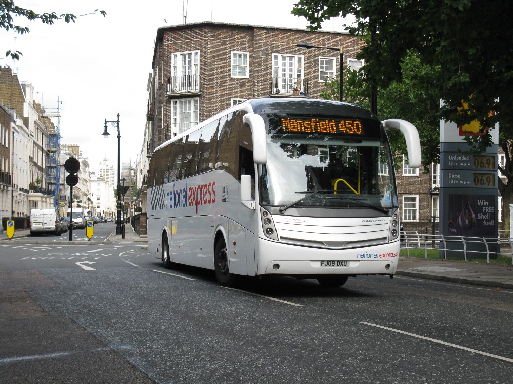 Edwards of Cardiff Yn08DNV and Westbus 109 were reported on Megabus reliefs.