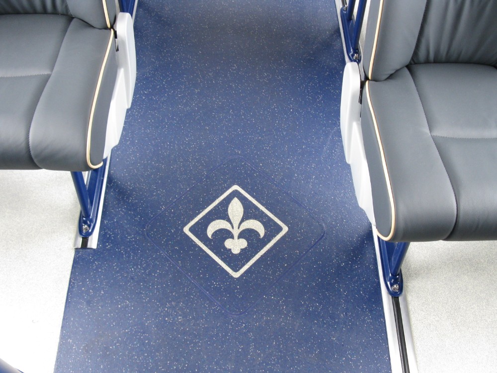 in bold blue with complimentary cream piping the interior of these buses