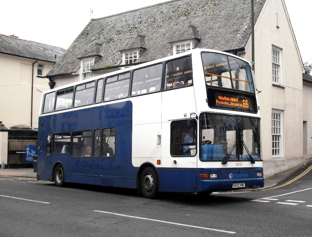 J May writes "I recently have been down the South Hams and have photographed around 170 buses. One of them was ex-Stagecoach Oxford 18052 (KX53VNC) – it is seen at Brixham Town Centre on Monday 10TH August on route 66, which connects Brixham and Torbay Hospital."