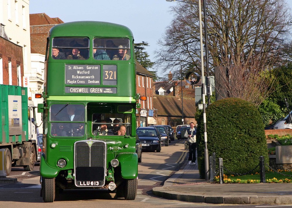 Colin writes "Following a terrible weeks weather, Sunday 14th dawned a bright sunny day, ideal conditions for the St Albans Running Day. St Peters Street resembled at times what it used to look like 50 years ago when it was a haven of green London Transport buses. The bus garage has gone but much else remains the same and a good selection of GS/RF and RT and others could be seen revisiting local routes."
