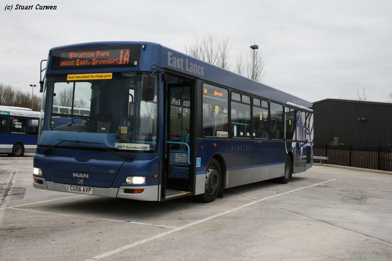 Report from two sources plus pictures give us a current picture of goings on at Thamesdown. Stuart Curwen writes "this MAN Kinetec demonstrator is currently on loan to Thamesdown Transport and will be in service from 17th January for 3 weeks it will be used on service 1A like the Scania OmniLink."