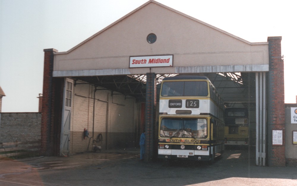 I really started to take an interest in Oxford in the early 1980s and even more so from 1987 when The Oxford Tube started to run. This was a time when there were many changes in the city, resulting in the privatisation of COMS. This was split into two parts, the city running services in and around Oxford and South Midland running country services based on Bicester, Witney and Wantage. South Midland gained some interesting liveries in those days with some buses appearing in an interesting livery of blue, white and sand. I was passing Bicester on one occasion and happened upon an ex Manchester Titan. In fact on that day there were two ex Manchester Titans in the small depot alongside the railway line.
