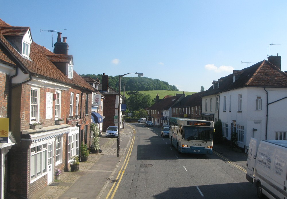 We are soon on to the Tring Road and headed for the small town of that name. We get glimpse of the new road to our left and it is not long before we make a right turn down Cow Lane where we edge slowly past an eastbound 500 service operated by a Aylesbury based Trident 5422. We turn left into Station Road, the actual rail station – on the west coast main line – is some distance to our right, not very convenient for the residents of the town. This road comes into Tring from Aldbury and Ivinghoe and carries quite a lot of traffic considering it is not even a B road. However after a short distance, we turn right and back on to the old A41 into Tring itself.