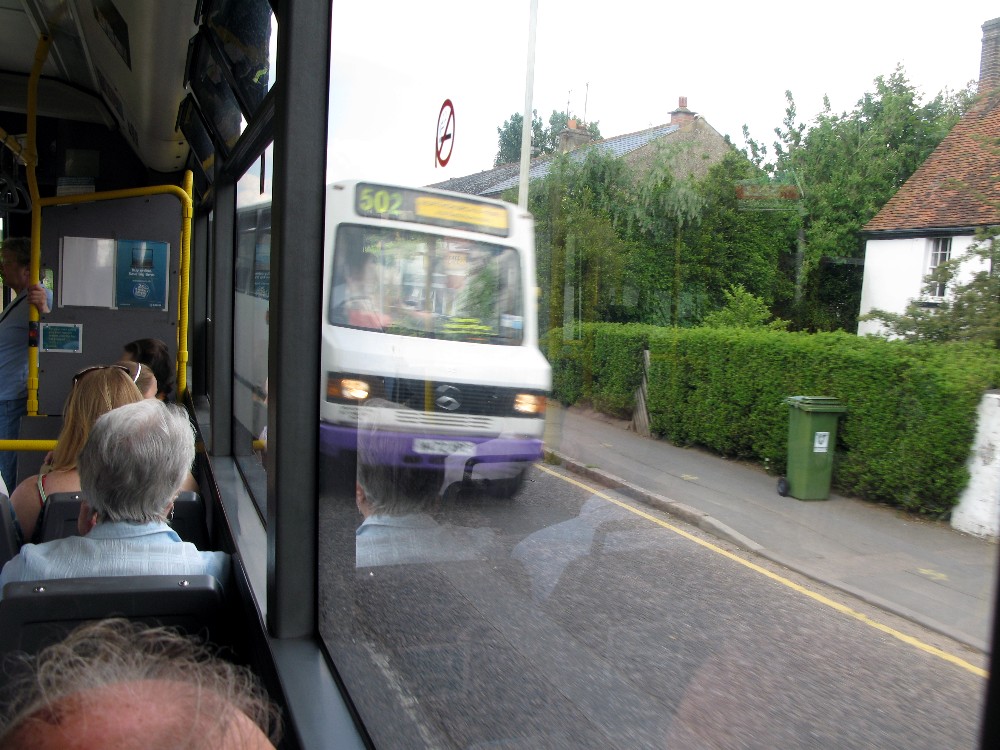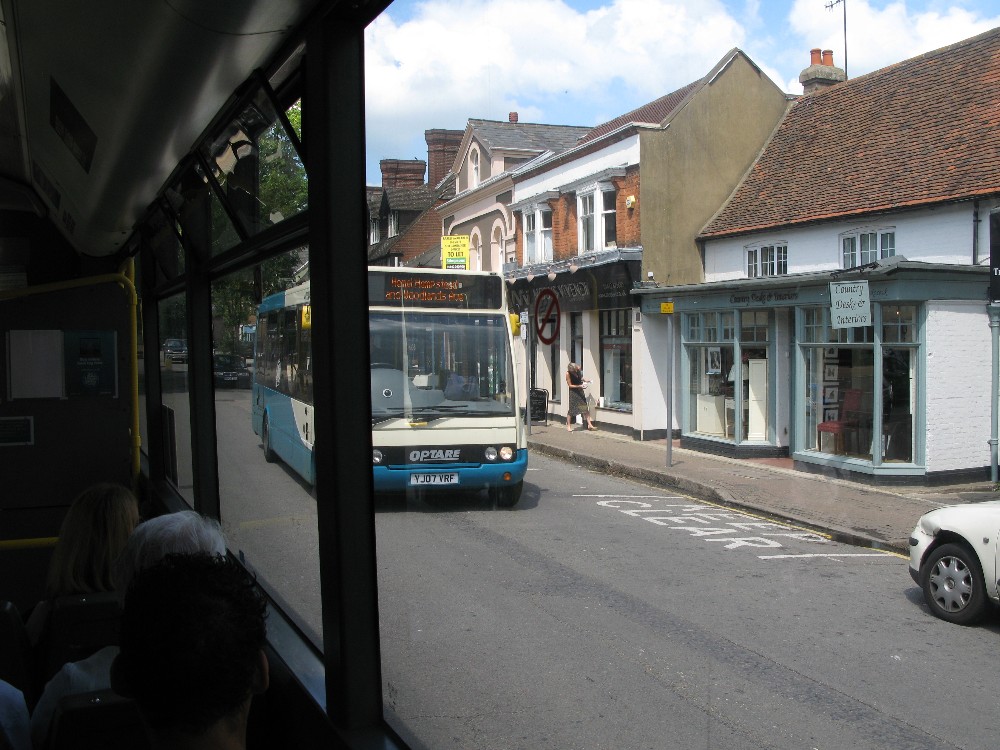 The half hour seemed to pass quickly and the sun came out giving us a really warm and pleasant morning. Our coffees pleasurably drunk, we were soon boarding our next service, the Arriva 52, running between High Wycombe and Hemel Hempstead. This is a comparatively recent innovation, in that travellers can use a through local bus between the two towns. Previously the only through service was by National Express 737, which generally will use the M25/M40 routing. However with widening works now causing delays on the M25 between junctions 16 and 18 it is possible that one will see the 737 passing through Chesham. It makes a pleasant change from the motorways and takes no more time than using the M way routing.