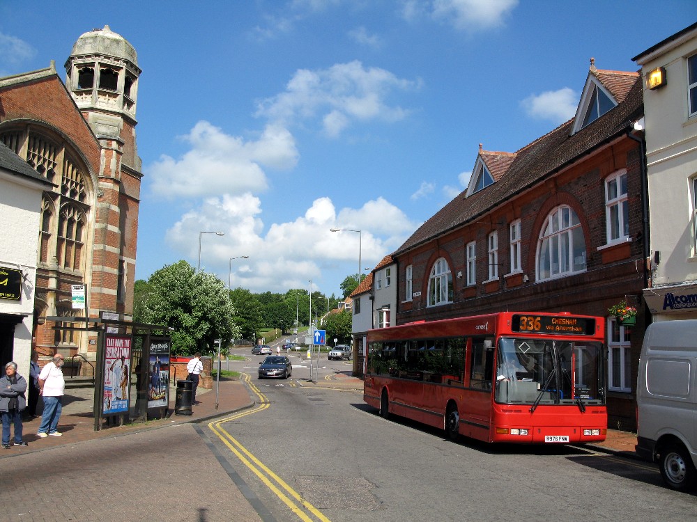 Once again I had time to nip off and take a picture of our Olympian at Amersham Station before we continued towards Chesham. The bus was still lightly loaded and we could have managed with a GS! As we head up Hill Avenue we can see Dr Challoner’s School to our left at the junction.
