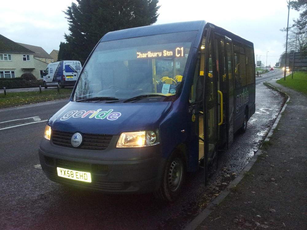 Go-Ride rarely seen in action - SF08GLK at Middle Barton on the W10 on February