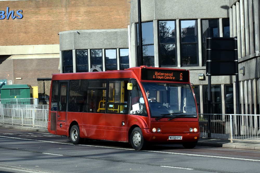Optare Solos MX58 KYR/S have been repainted into the new smart red livery with no branding or company logos. These buses previously operated in blue ‘Water Rider’ livery for town services in Aylesbury.