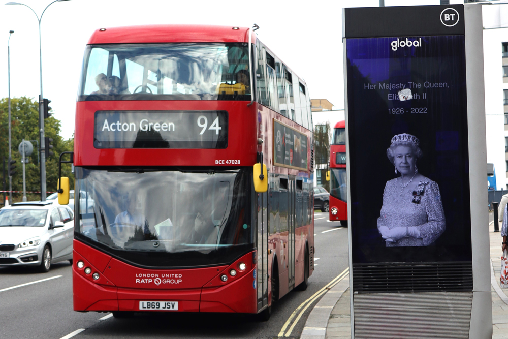The passing of HM The Queen is being marked by Global, the advertising company, by displaying this portrait.