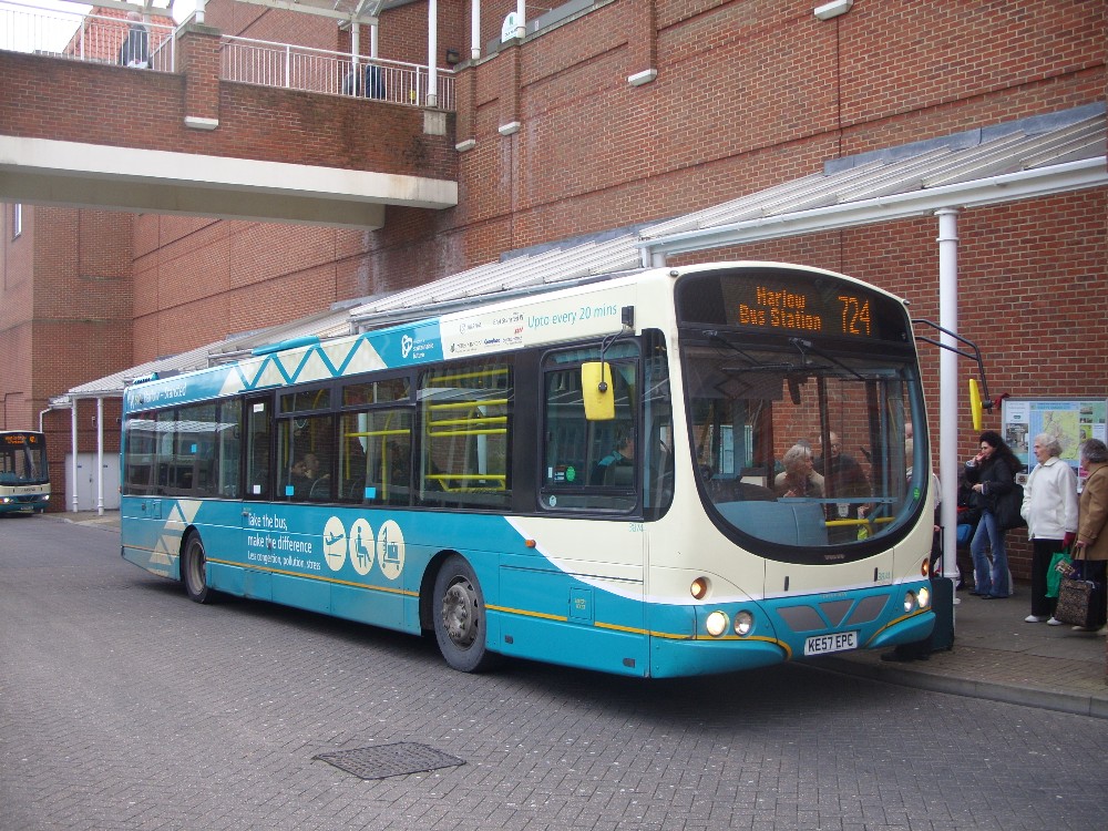 Arriva Harlow Volvo 3874 in Welwyn GC on Greenline 724 heading for home and