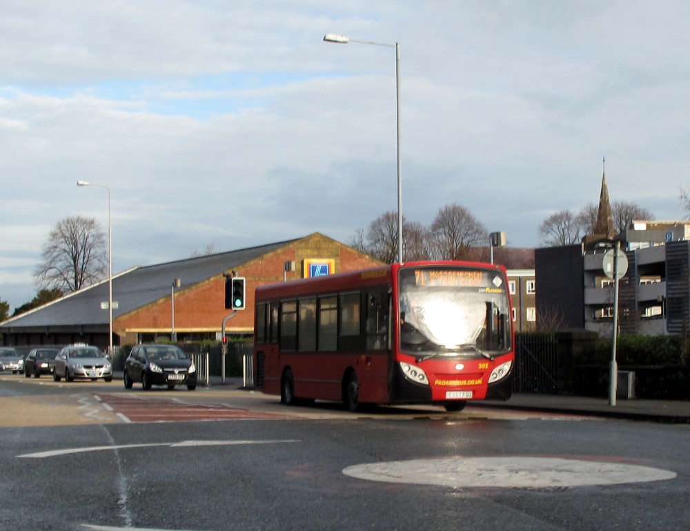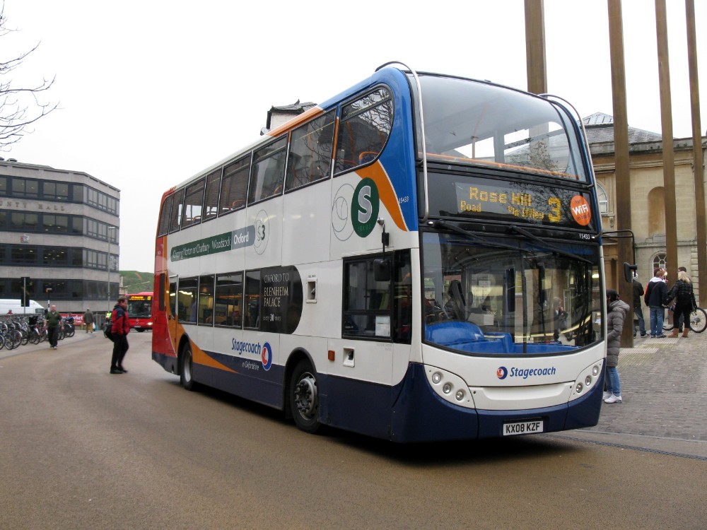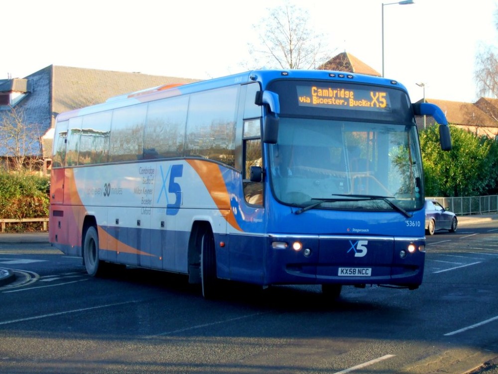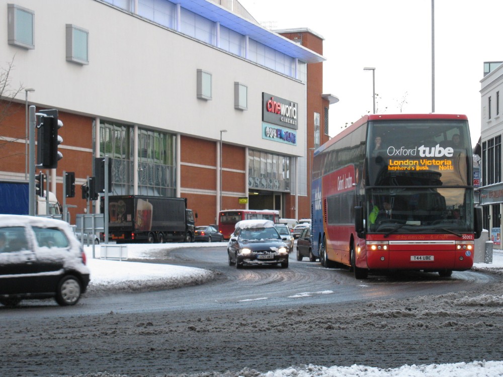 Oxford tube 50202 is seen negotiating the main roundabout in town.