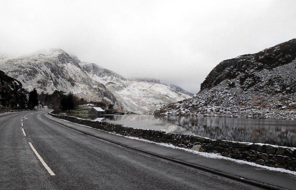 We took the M40, M42, M6 routing round Birmingham and then branched off onto the M54 towards Shrewsbury and the A5. The roads were remarkably quiet and we made good progress towards our destination. The A5 through Llangollen and Betws-y-coed is a most attractive one and the road was almost deserted for most of our journey along this part of our route. as one heads up into the hills above Betws the mountains take over the views and there was snow on the tops and it was very cold, around -3°