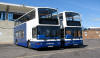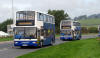 Terry Partridge writes "Autumn is a-coming so low sun and plenty of shadows. Still these are the two operating the 15min free service from the Big Sheep to the Pill at Bideford. I gather all the Brookes buses have been in Barnstaple - two covering this event but others to cover vehicle shortages and I also gather they go North on Sunday."
