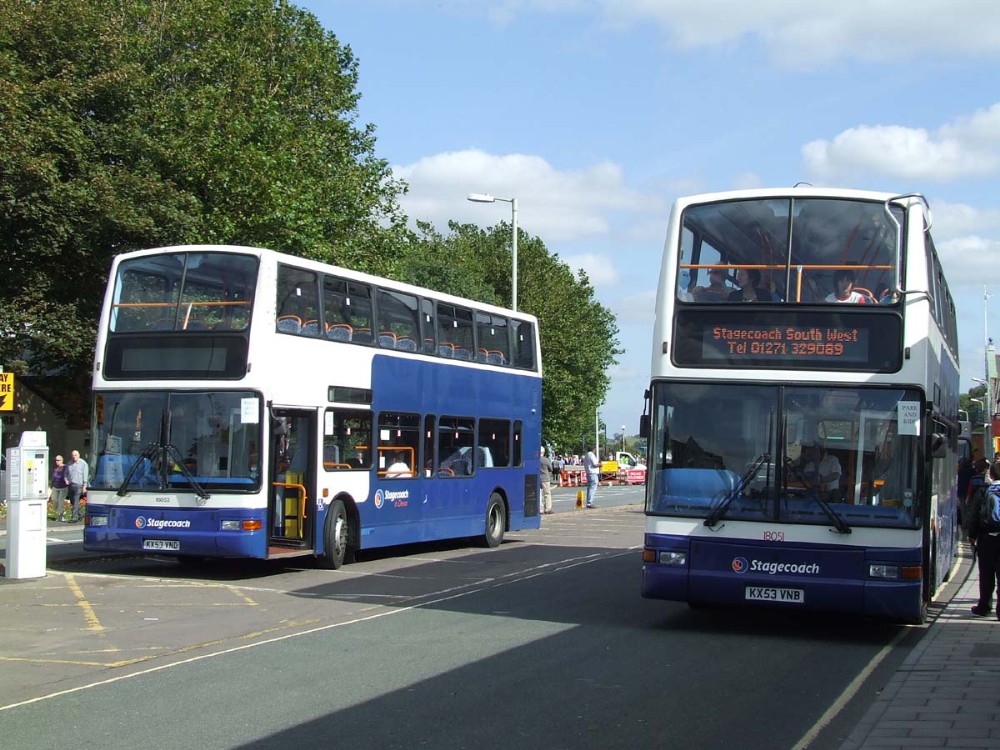 Ken added two more pictures saying "The first is 18053 and 18056 leaving Barnstaple and the second, 8055 with 18052 in Exeter Coach stn last Thursday"