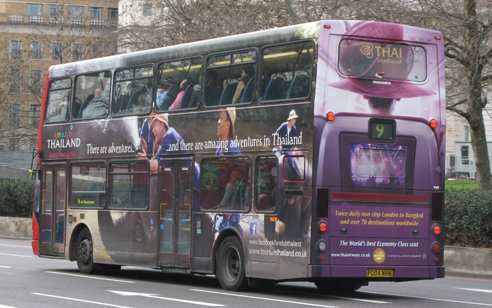 London United Volvo VLE 10 on route 9 with Thai overall advertising on January 23rd by Gavin Francis
