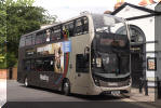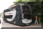 Trident 'Rooftop Bus' is seen on layover in Colnbrook before heading for