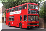A similar preserved Stagecoach example leaves Colnbrook with a lively group of
