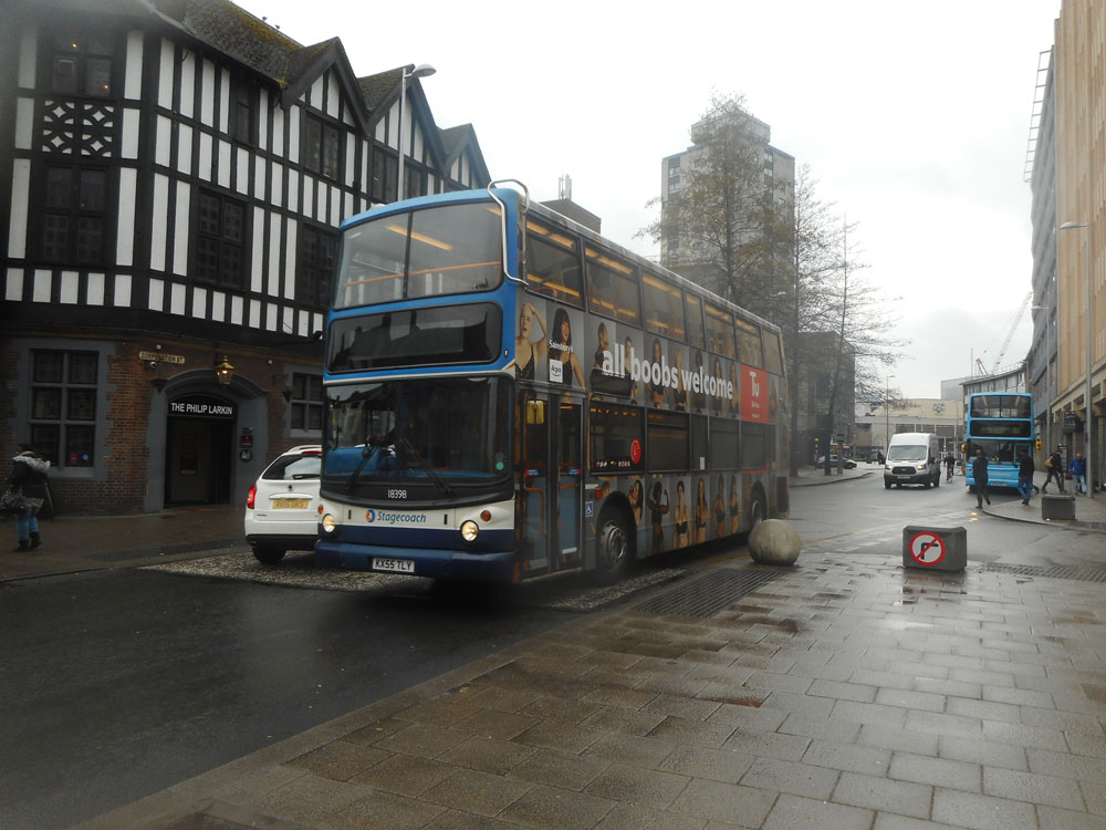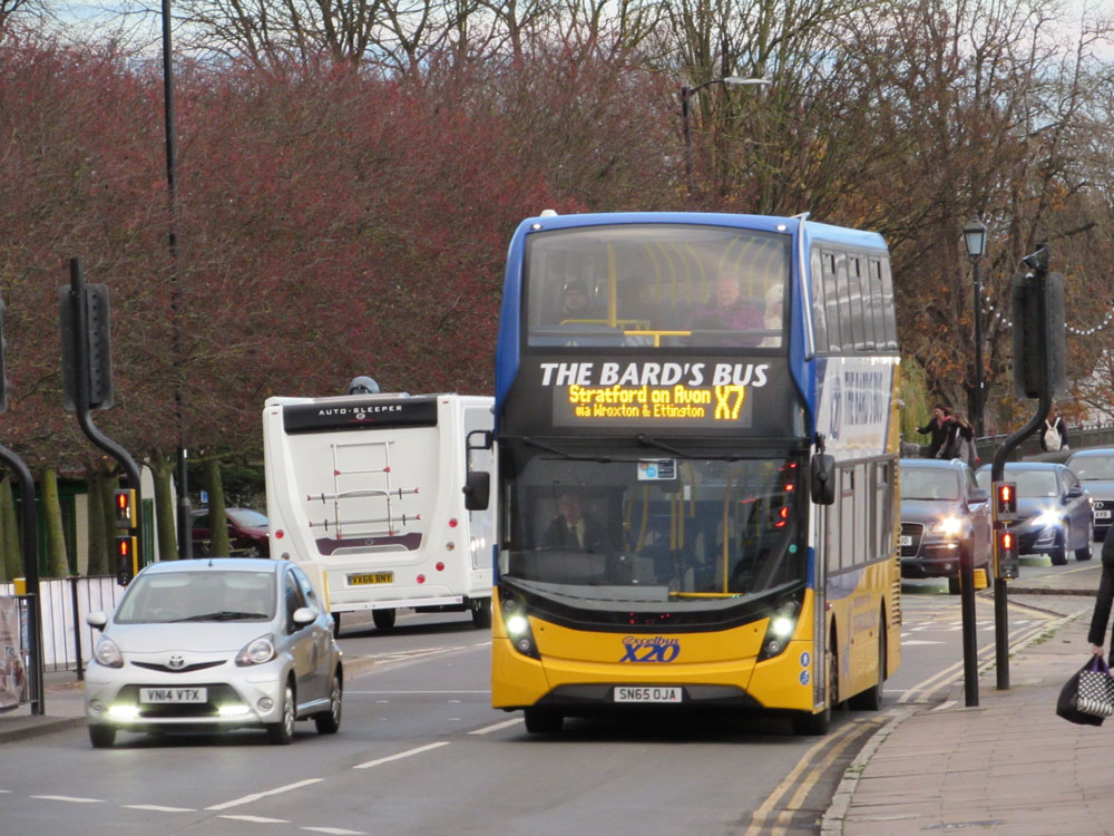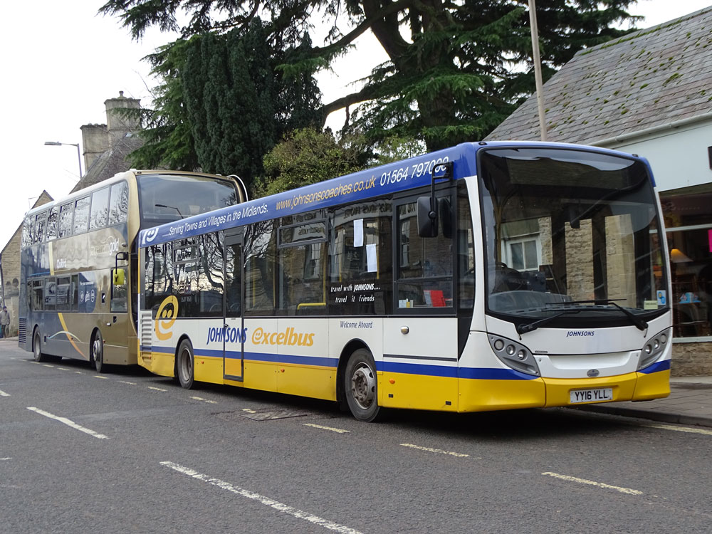 On Tuesday, February 26th, I went to Stratford on route 7 from Banbury. This was a Johnson service, then Stagecoach had it for a short period but is now back with Johnsons again. The number of passengers could be counted on one hand both previously and now so relies on County subsidies to maintain the service. I came back on Johnsons X7 express to Banbury. It was an AD E400, built 2015, which used to be on the service to Birmingham. All three E400 buses are now on dedicated school bus services as the Birmingham service now only runs on Sundays. Stagecoach previously operated the Birmingham service but gave it up as unprofitable, including a short period of Oxford – Chippy – Stratford – Birmingham hourly.